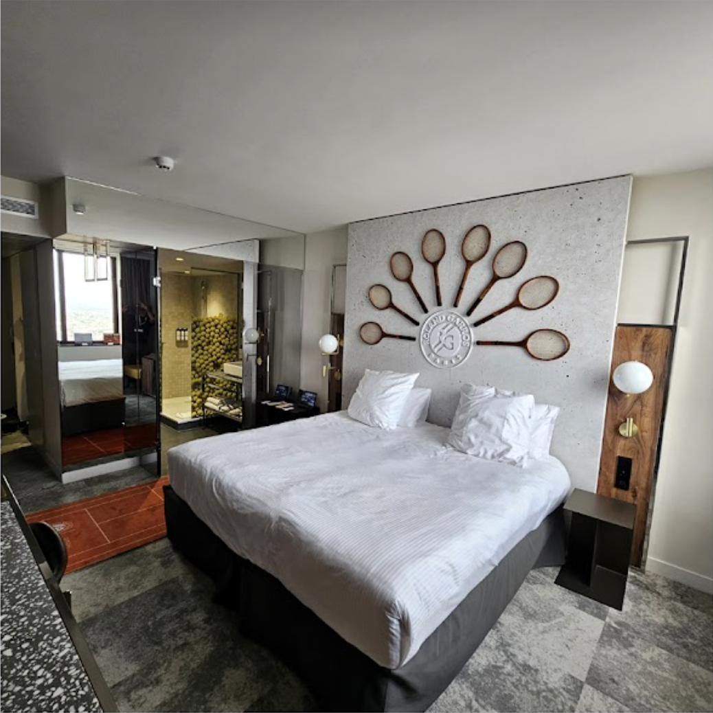 On l’a vu concrètement avec certains projets plus confidentiels, comme des aménagements réalisés pour des espaces liés à Roland Garros, où nos raquettes ont été utilisées pour décorer des chambres VIP d’athlètes. Là encore, l’objectif n’était pas de parler de performance, mais d’installer une ambiance, un univers, presque une signature visuelle autour du tennis.