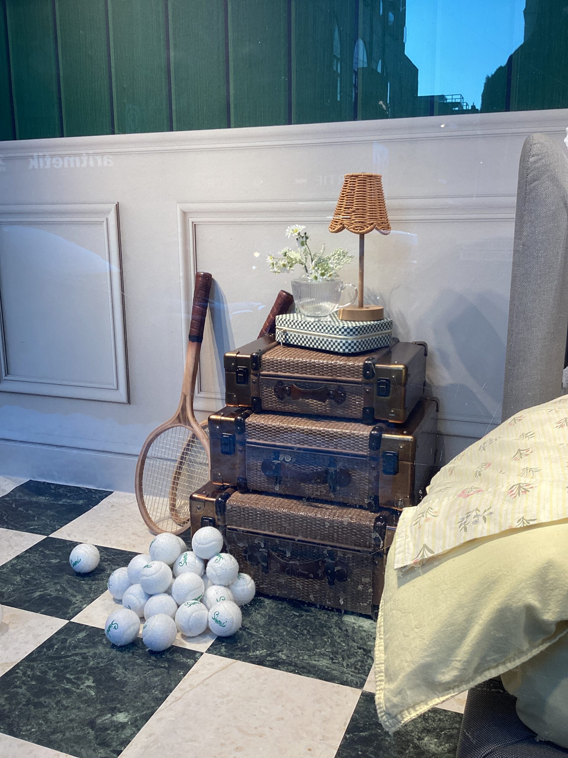Ces dernières années, on a vu passer des projets très différents, mais avec un point commun : la volonté de créer une vitrine forte, élégante, autour de l’univers du tennis. C’est comme ça que nos raquettes se sont retrouvées chez Simons au Canada, dans une mise en scène complète autour du sport vintage. Quelques semaines plus tard, direction Paris avec Lacoste, pour une vitrine aux Galeries Lafayette Haussmann, avec plus de 30 raquettes installées en série. Et plus récemment, la maison Bourrienne Paris X est venue chercher cette même esthétique pour enrichir son univers.