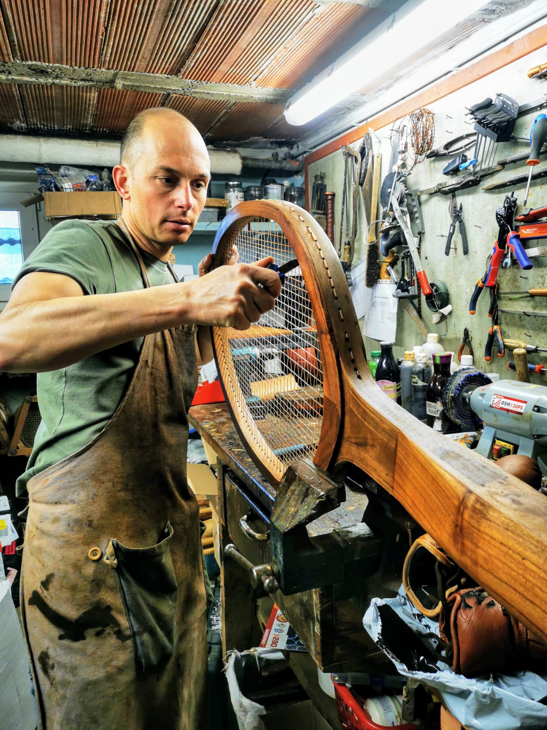 Imaginez une belle raquette de tennis Gauthier, Dunlop ou Donnay vintage avec un miroir intégré pour votre salle de bain. Ça serait sympa comme idée déco en matière de tennis vintage non ?